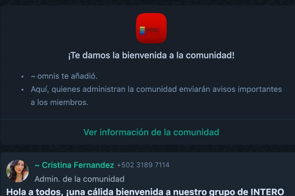 El lunes 14 de octubre, varios guatemaltecos fueron añadidos a un grupo de WhatsApp llamado “Intero DMA Service 62”, cuyo propósito es realizar estafas a