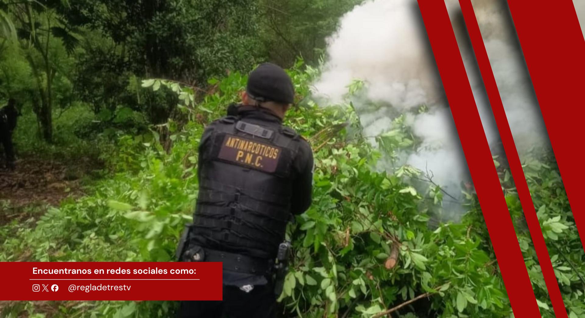 Agentes de la Subdirección General de Análisis de Información Antinarcótica de la Policía Nacional Civil han reportado la erradicación de una extensa plantación de arbustos